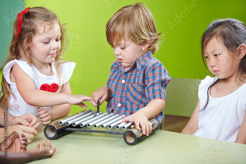 Erzieherin oder Lehrerin mit Kindern beim Lesen lernen