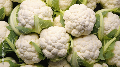 Fresh cauliflower isolated on white background with green leaves