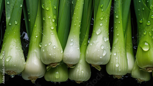 Ripe leeks with waterdrops