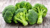 Fresh Green Broccoli Florets On Rustic Wooden Table For Healthy Eating And Vegetarian Recipes Close Up View Of Raw Vegetable Ingredient