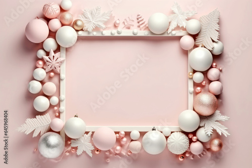 Minimalistic rose and white Christmas decoration frame