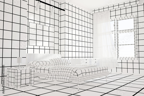 Modernes helles Schlafzimmer mit Doppelbett von oben