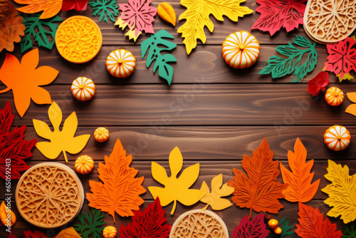 Autumn floral wreath with colorful fall flowers, leaves, and wildflowers in vibrant shades of orange and red on a white background