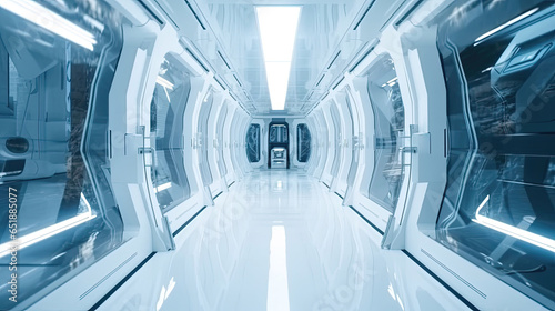 Futuristic sci-fi spaceship corridor with sleek and modern design