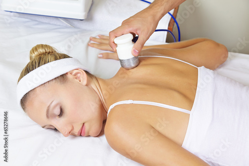 Ärztin mit Mundschutz misst Fieber bei Baby