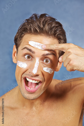Mann cremt sein Gesicht ein
