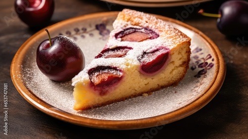 Slice of creamy cheesecake topped with fresh berries on white plate