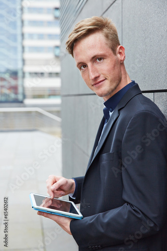 Geschäftsmann arbeitet mobil mit Tablet Computer