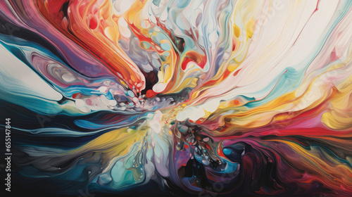 Vibrant liquid colors in a swirling closeup macro shot for artistic backgrounds