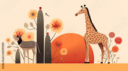Cute illustrated snake surrounded by colorful flowers and nature elements