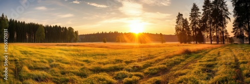 Golden hour over lush meadow at summer