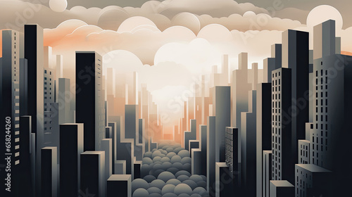 Abstract city skyline sillhouette shapes as wallpaper background illustration (Generative AI)