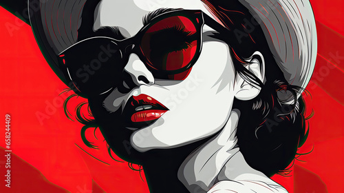 Illustration of woman with red lipstick & shades