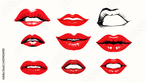 Set of female red lips with lipstick as illustration design elements