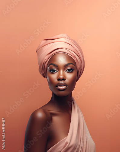Beautiful Nigerian woman in vibrant neon portrait emphasizing skin care