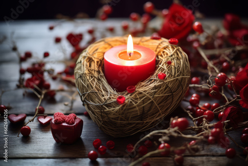 red candle in the heart shape in the style of christmas