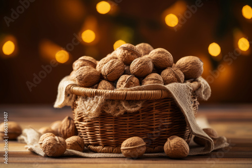 wicker basket full of walnuts for christmas