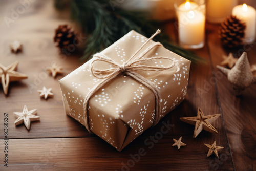 Open gold ribbon gift box with glitter bow on a soft glowing bokeh background