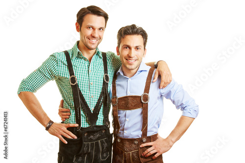 Zwei Männer in Lederhosen mit bayrischer Flagge