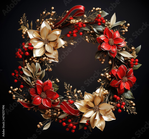 Festive Merry Christmas and Happy New Year with decorated fir branches and ornaments