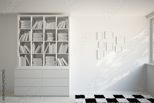 Interior of modern minimalist walk-in closet as digital illustration (Generative AI)