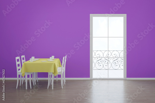 Esszimmer mit Balkon und Tisch