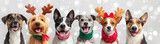 Festive Dogs Wearing Antlers and Scarves on a Bokeh Background for Christmas Holiday Celebrations and Pet Related Promotions