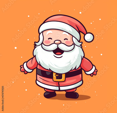 Smiling Santa Claus wearing glasses and red outfit with a cheerful demeanor