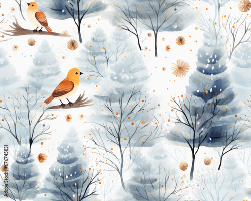 Winter landscape with snow and fir trees as vintage christmas wallpaper