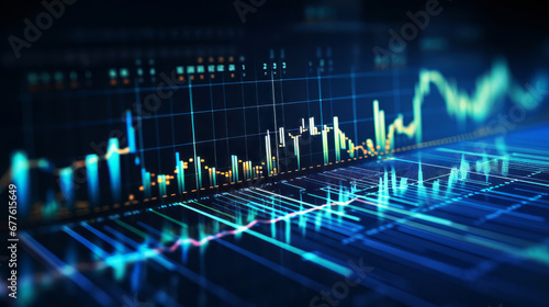 Financial chart visualization with candlestick pattern in blue data background