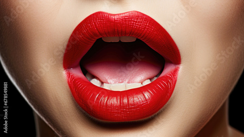 Close-up of sensuous red lips, emphasizing the beauty and texture of makeup
