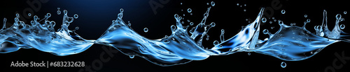 Vivid blue water splash isolated on black, depicting fluid elegance