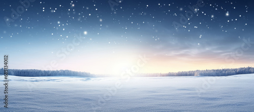 Beautiful winter landscape with snow-covered trees and clear blue sky