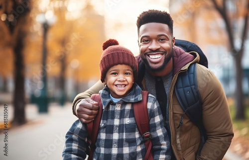 Mother and daughter enjoying a joyful outdoor hike in a scenic mountain landscape, wearing colorful winter jackets and knitted hats, showcasing family togetherness and adventure