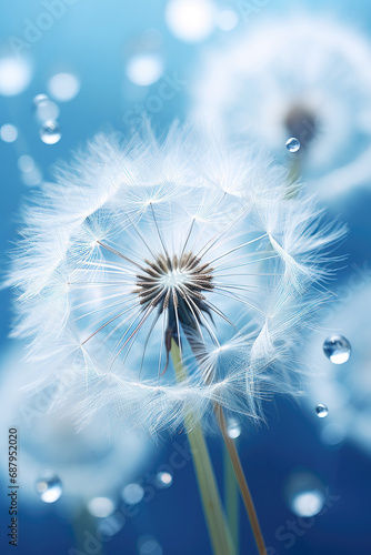 Close-up of dandelion blowball with falling water droplets
