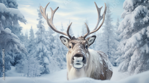 Winter landscape with snow and fir trees as vintage christmas wallpaper