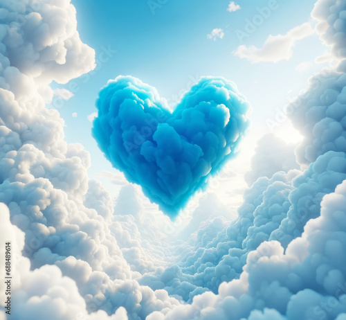 Heart-shaped cloud in a serene sky, symbolizing love and Valentine's Day