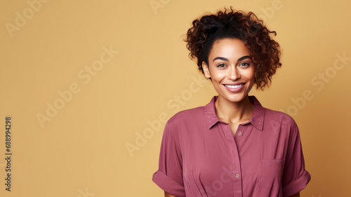 Joyful Asian non-binary individual in red attire smiling with happiness and confidence
