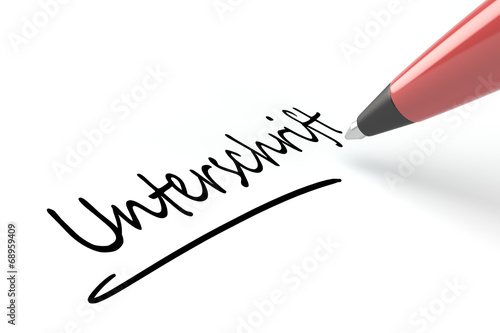 Kugelschreiber schreibt das Wort Unterschrift