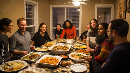 Diverse friends sharing homecooked meals in a private home