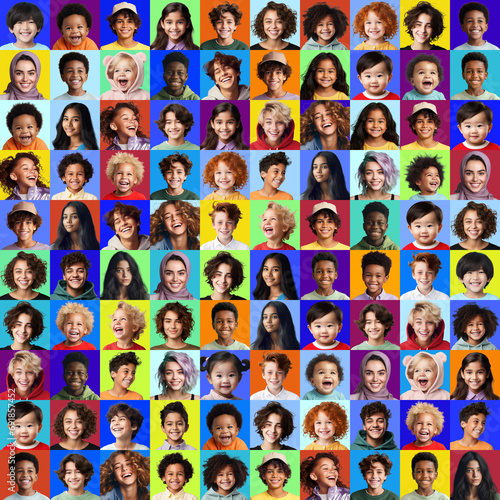 Portraits von vielen Generationen vor bunten Hintergründen als Gesellschaft Konzept