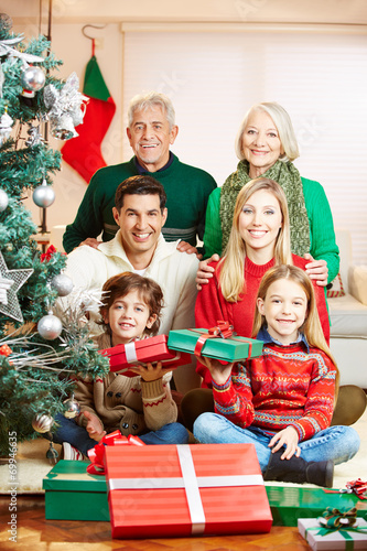 Familie mit Großeltern zu Weihnachten