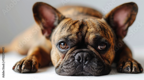 French Bulldog dog portrait in studio with vibrant colorful lighting showcasing expressive facial features and captivating eyes