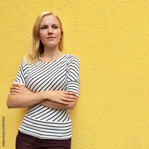 Blonde Frau mit verschränkten Armen
