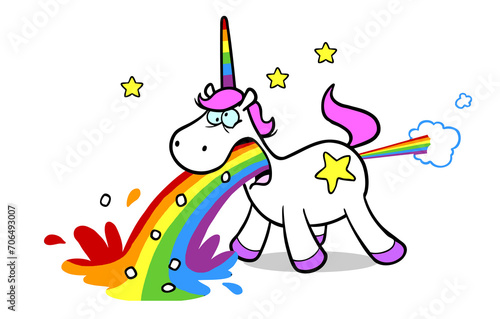 Cartoon Einhorn beim Kotzen, Kacken, Pinkeln und Furzen