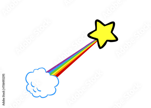 Gelber Stern als Regenbogen Sternschnuppe mit Wolke im Himmel