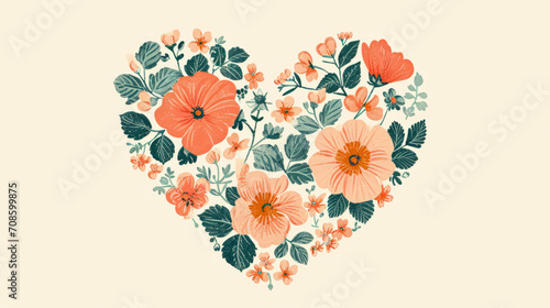Love heart shape filled with vintage floral patterns in pastel colors for Valentines Day