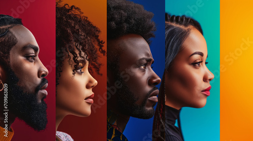 Abstract African people silhouettes in profile as Black History Month concept illustration