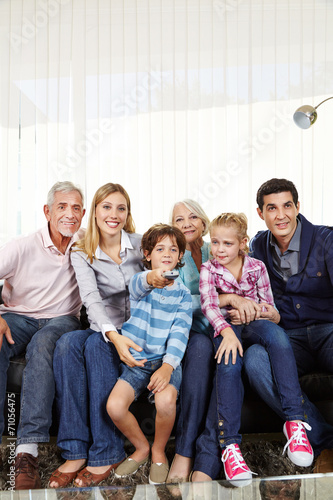 Familie und Kinder schauen Smart TV mit Fernbedienung