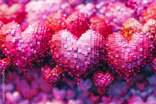 Red and pink love hearts as retro video game pixel art for Valentines Day